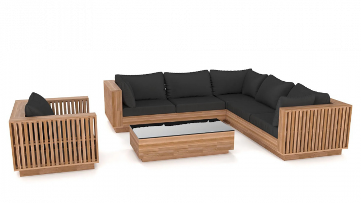 Akatienholz, Polster schwarz, 6 Sitzplätze komplett