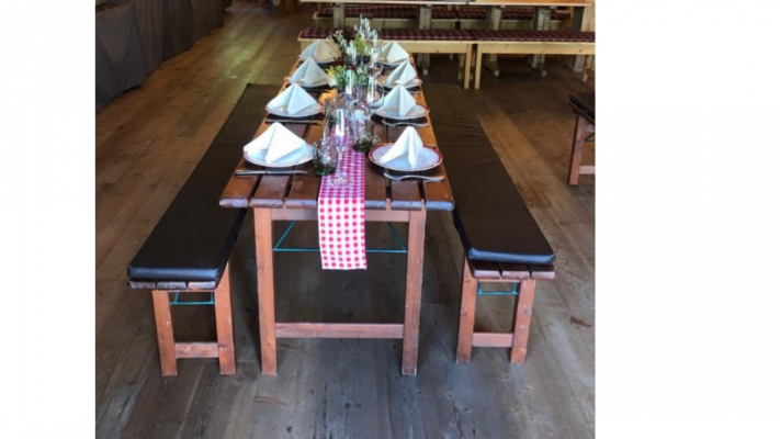 220x80x76 cm, Gestell grün, Tischplatte nußfarbig